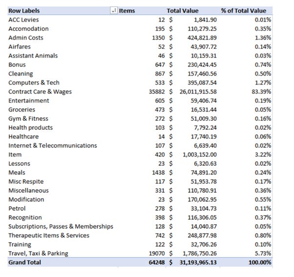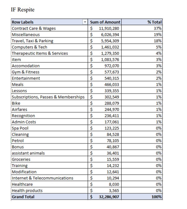 Most of the information I sought was redacted, but as part of this correspondence, Whaikaha provides what I can only assume is media-spin for whatever unfortunate Minister has to announce this change. They acknowledge that “Some of these purchases have recognised that effective support of the disabled person, including psychological services, speech-language services, services that work with young people who have both intellectual disability and mental illness, and the purchases of items that support disabled children to self-regulate, are an effective way to reduce the need for more intensive breaks”, but goes on to search for a justification to limits these funds and finds: “We have recorded evidence through providers of the range of purchases that are occurring, with access to pedicures, hairdresser appointments, and massages at the extreme end of the continuum.”